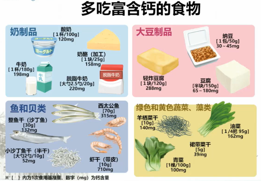 一些人如果不能通过膳食有效补充钙,也可以考虑通过“钙片”或营养素去补充。还需多吃富含维生素D的食物,比如冷水鱼类、甲壳类、鱼肝油、蛋黄等。适当户外运动。