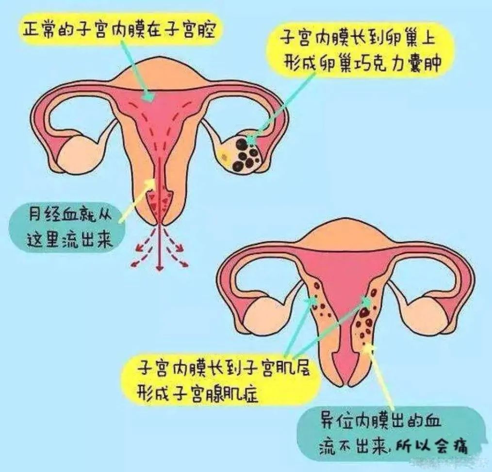 子宫内膜异位症引发的痛经,主要是病灶刺激局部组织炎性反应引起,更加可怕的是,子宫内膜异位症病灶本身可以导致子宫肌肉收缩,痛经势必更为显著。