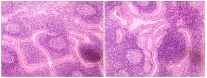 Warthin瘤组织学形态具有显著特征:肉眼呈典型囊性分叶状,切面灰白灰褐色;镜下由双层嗜酸性上皮细胞构成乳头状结构,间质为密集淋巴组织,可见生发中心。