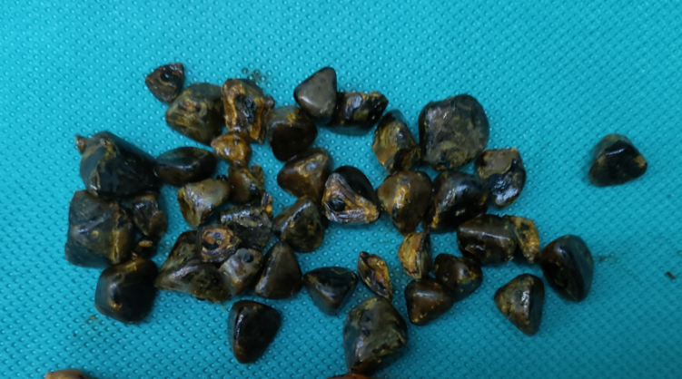 2、胆囊结石数量不多:为单个或少量多个,无嵌顿;