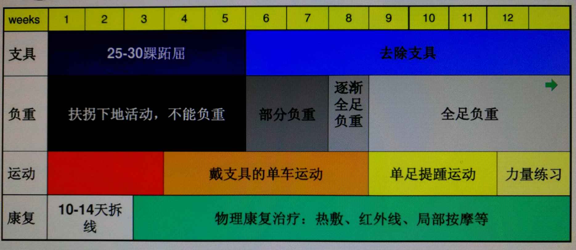 小伙伴们记住了三分手术七分康复!!前交叉韧带重建后的康复是愈合和恢复过程的重要组成部分,下图就是单纯前交叉韧带重建简要的康复时间表: