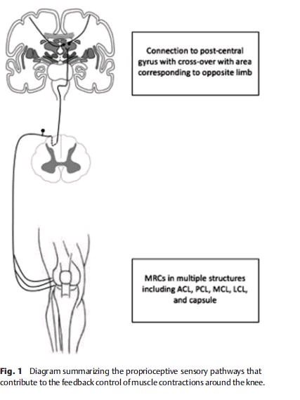 自1984年Schultz首次在前交叉韧带内识别出机械受体(MRCs),目前已有很多项研究证实了它们与其他膝关节结构中的类似受体一起存在。人们研究了前交叉韧带撕裂对膝关节本体感觉的影响。参与本体感觉的MRCs已被证明在膝关节功能、防止损伤和限制骨关节炎退化方面发挥重要作用。正常ACL在周围包含MRCs,这些MRCs与其他膝关节结构中的类似受体一起形成反馈路径。这种反馈控制对四肢有重要的影响。