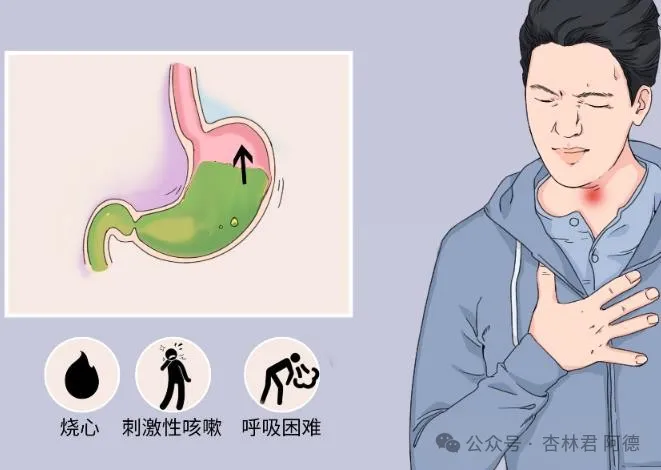 有什么症状?比较典型的症状是反流和烧心,反流就是感觉有什么东西往上窜,烧心就是胸口火辣辣的感觉,有时就像吃辣椒那样。不典型症状有:胸痛、上腹烧灼感、上腹痛、上腹胀、嗳气。另外,反流液继续往上反,长期刺激咽喉,还可以出现反流性咽喉炎、反流性咳嗽、反流性哮喘、反流性喉痉挛和反流性误吸等疾病的症状,这些患者可能会反复到呼吸科门诊诊治,用抗生素、止咳化痰和平喘的效果都不好,最后才到耳鼻喉科或消化内科确诊这个疾病,用了抗反流的药物后症状才明显缓解。