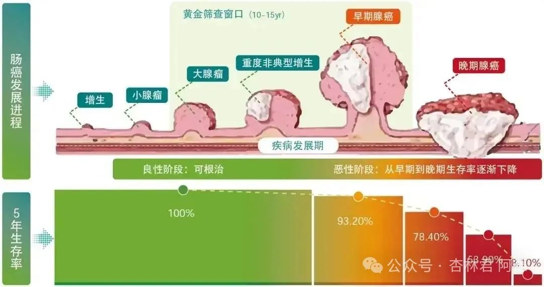 在现代快节奏的生活中,我们往往忽略了身体内部的“静悄悄”变化。在临床诊疗中,我们常常为已发展为结直肠癌的患者感到惋惜。结直肠癌,也称大肠癌,作为全球发病率和死亡率都较高的恶性肿瘤之一,正悄无声息地威胁着我们的健康。相关监测数据显示,我国结直肠癌发病率和死亡率分别为36.63/10万和17.00/10万,总体呈上升趋势。近年来我国结直肠癌患者5年生存率虽有所提高,但仍处于较低水平,而早诊早治可以将其显著提高,而在癌前病变转态——腺瘤性息肉就切除,就可以有效预防肠癌的发生。根据最新发布的《结直肠癌筛查与早诊早治方案(2024年版)》,了解大肠癌的危险因素及采取有效的预防措施,是守护健康的重中之重。