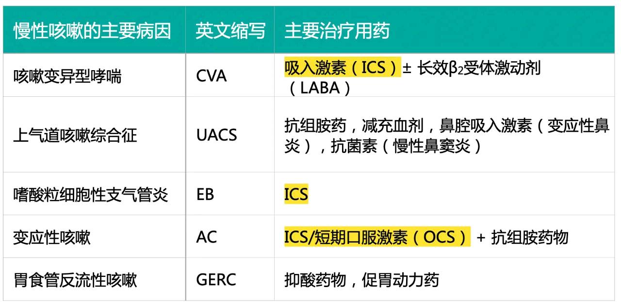 慢性咳嗽主要病因及治疗药物