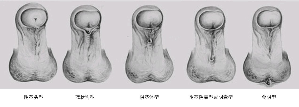 通常根据尿道口的位置异常,对尿道下裂进行分类: