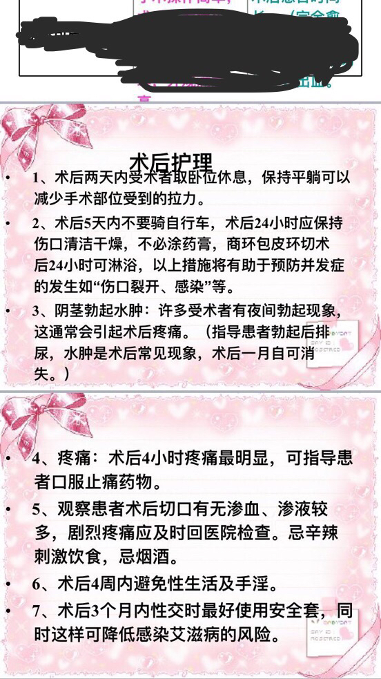 例3.邱某,男,28岁,以“同房后系带撕裂伤1天”为主诉来诊,体检发现,患者包皮过长,系带渗血,建议患者行包皮环切术加系带修复。术后消炎对症治疗。