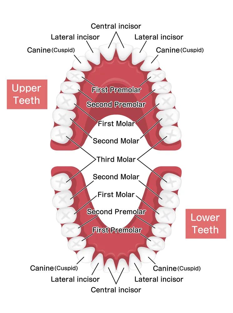 在拔牙病例中,我们经常选择的是拔双尖牙,也就是4号牙或5号牙,这两颗牙位置整个牙弓的中段,属于过渡的牙齿,并且在每一侧,都有两颗前磨牙,第一前磨牙(4号牙)和第二前磨牙(5号牙)。