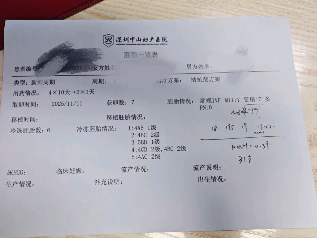 31岁 AMH 0.39, 取到7个卵,成熟7个,受精7个,第三天优胚7个! 形成囊胚6个!