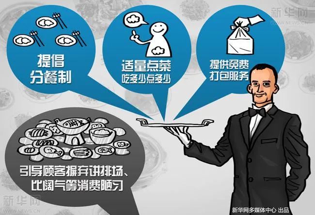 其实我们每个人都是“新食尚”的实践者和推行者。无论是在家还是在外都应该做到主动的分餐或简餐,遵照中国居民平衡膳食餐盘的结构和比例,适量的选择食物,如有剩余则打包带走,推行“光盘行动”。让我们珍惜食物,适量备餐,推行环保卫生又不浪费的生活模式吧。