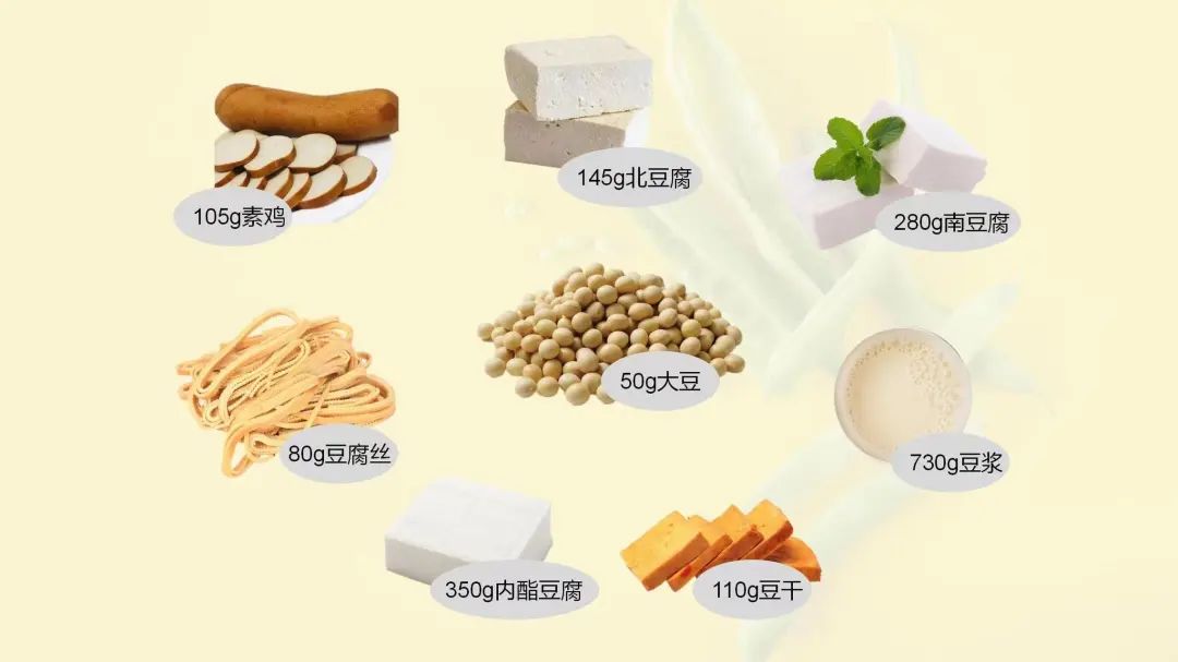 实践应用:每天吃全谷物食物50~150g,相当于一天谷物的1/4~1/3。杂豆可以和主食搭配食用,发挥膳食纤维、维生素B、钾、镁等均衡营养作用,提高蛋白质互补和利用。全谷物入口感觉粗糙,杂豆不好煮熟,习惯精制米面细软口感的消费者,使用全谷物杂豆初期应学习适宜烹饪方法。每周可用豆腐、豆腐干、豆腐丝等制品轮换食用,既变换口味,又能满足营养需求。以下大豆制品的数量可折合成50克大豆。