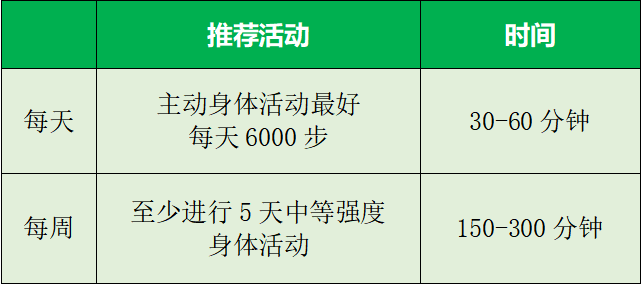 1.各年龄段人群都应天天进行身体活动,保持健康体重。