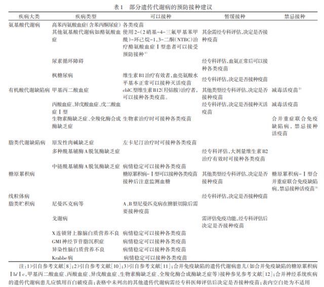 对于目前临床相对常见的遗传代谢病患者,根据患病类型采取不同的预防接种策略;