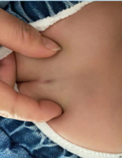 在确诊为TCS的儿童中,约 50%~80% 存在骶尾部皮肤异常,包括凹陷、多毛斑、血管痣或皮下脂肪瘤等。其中,骶尾部凹陷是最常见的体征之一。(下图是低风险)