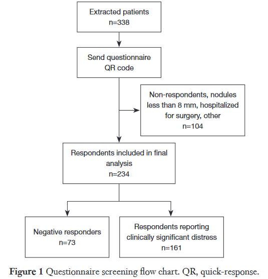 研究团队采用了横断面问卷调查的方式,流程图见图1,对患有小肺结节并决定接受手术或监测的患者进行了深入调查。问卷涵盖了患者的个人信息、家族病史、生活方式、对疾病的认知以及心理状态等多个方面。此外,他们还使用了事件影响修订量表(IES-R)来评估患者的焦虑程度。这一量表能够客观、准确地反映患者的焦虑水平,为研究提供了有力的数据支持。