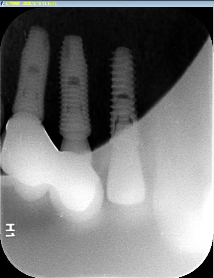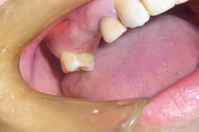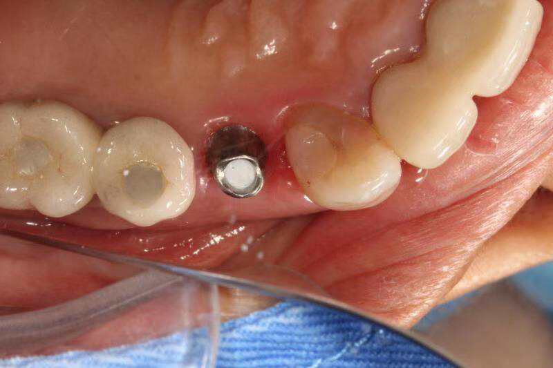 患者女,右上4号牙根管治疗后桩核冠修复,因进食硬物导致桩核冠脱落,未及时处理,导致残根无法修复,从CT上看,牙槽骨高度尚可,所以选择了即拔即种的治疗方案,且术中植骨盖膜、上愈合基台,为患者节省了就诊次数,提前了戴牙时间。