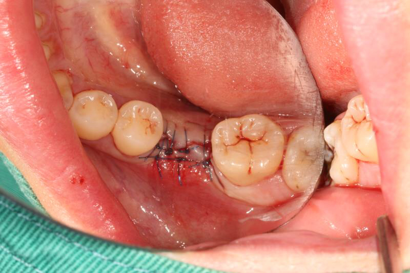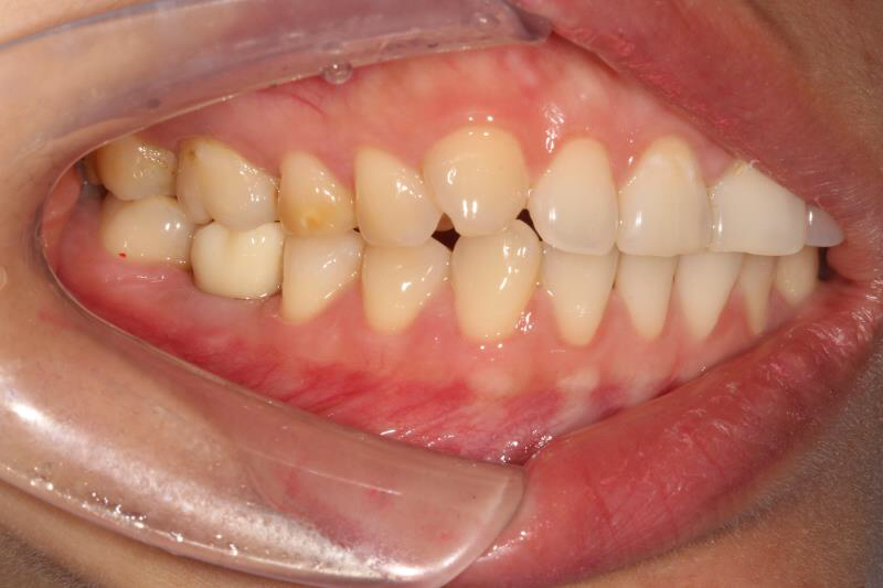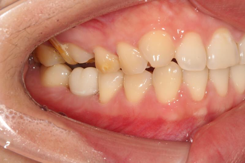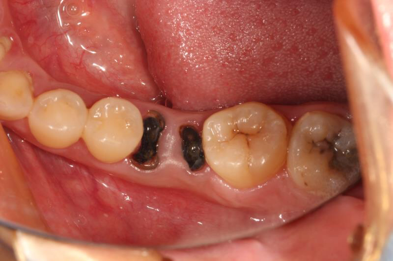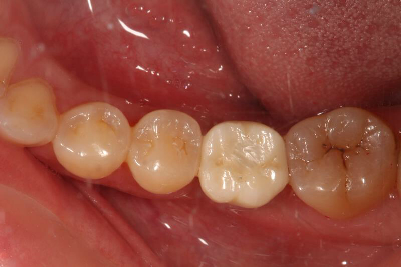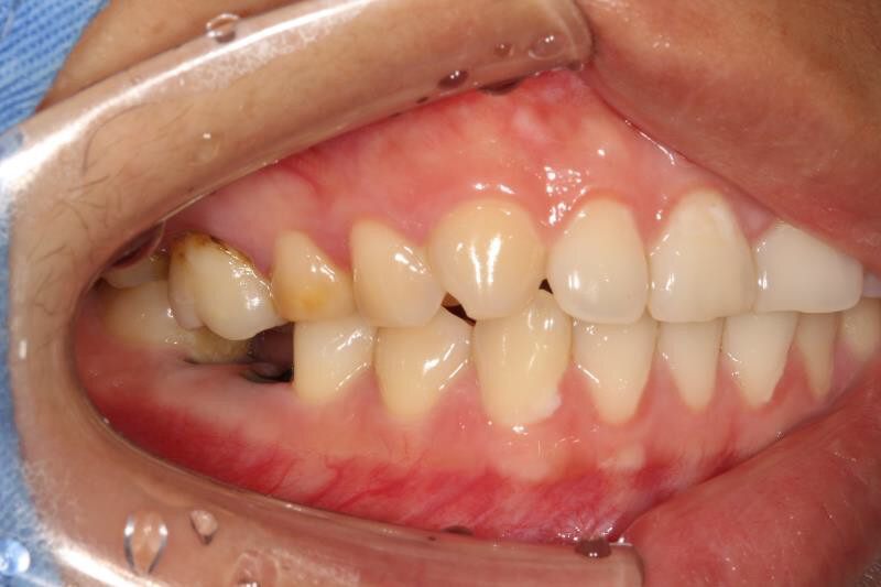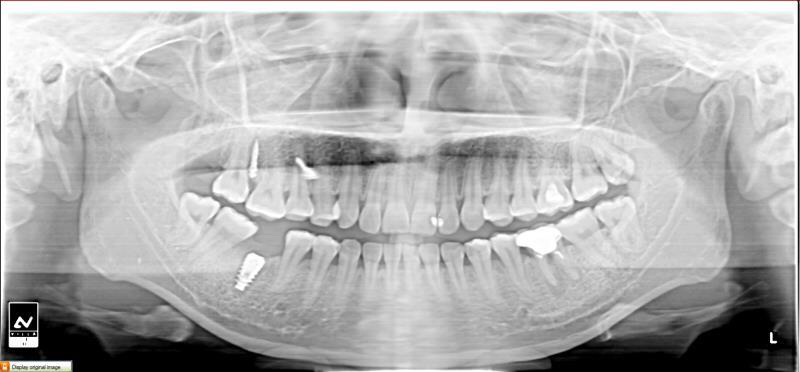 患者年轻女性,后下6残根,因未及时修复,5、7号牙向6号牙倾斜,导致了修复空间不足。按照常规治疗方案,会损伤两侧的健康牙齿,得不偿失,所以我们为她采用了正畸+种植联合治疗方案。