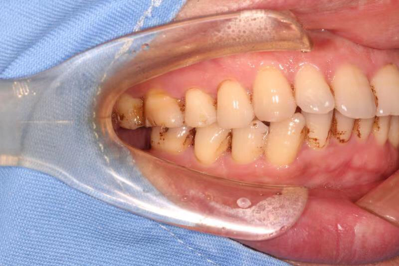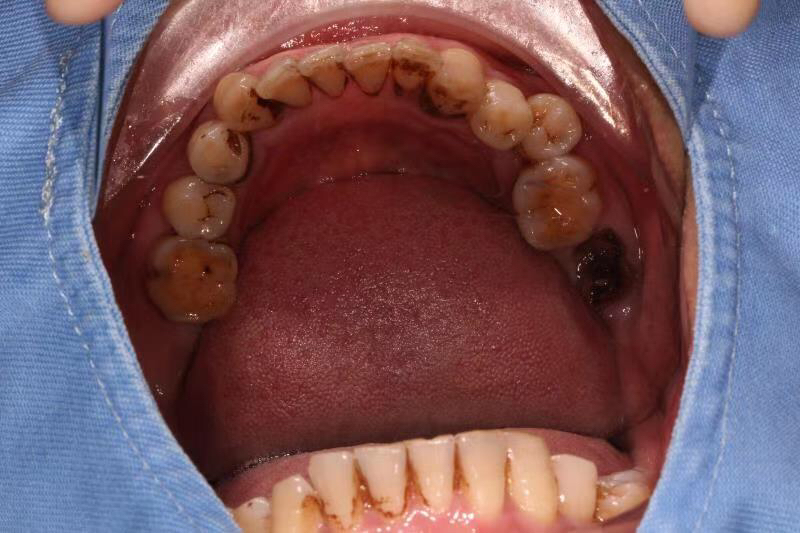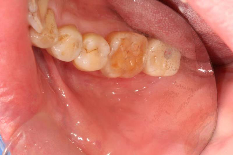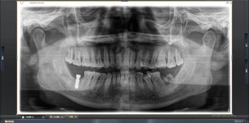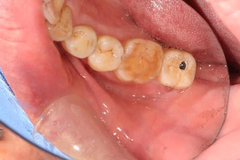 患者中年男性,右下7号牙龋坏未及时处理至残根无法修复,CT检查发现骨量尚可,可以即拔即种,并且不需要植骨,节省了患者治疗周期,整个治疗过程用了4个月患者就戴上了牙齿。