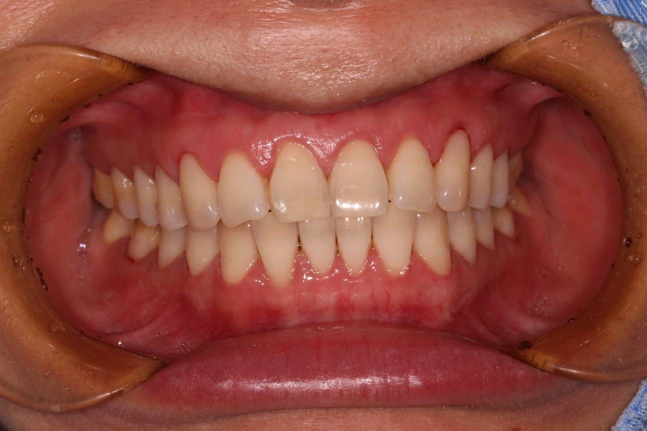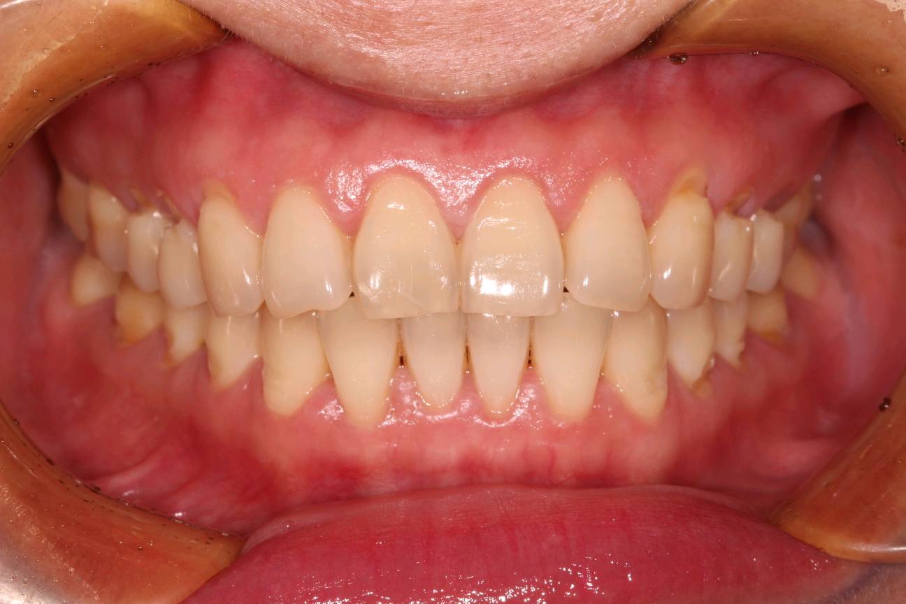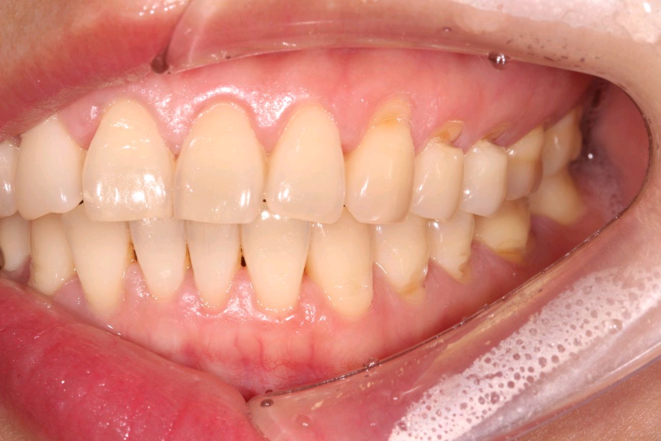 补牙前口内照 ,上下牙颈部不同程度缺损。