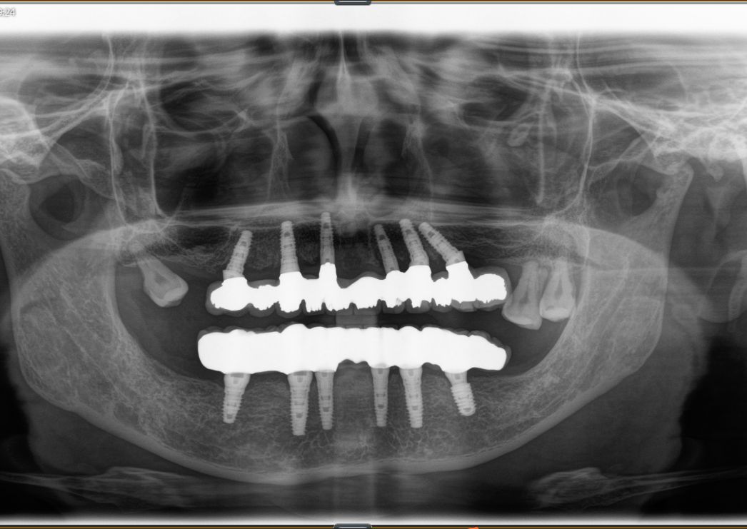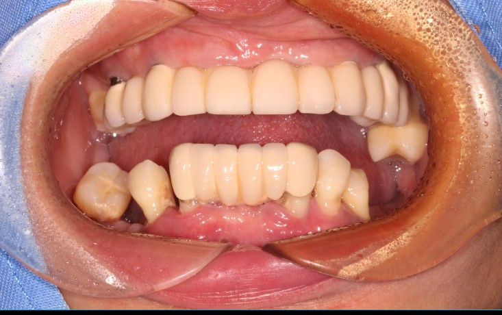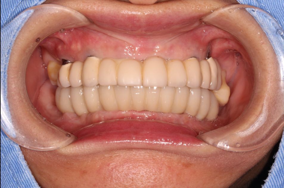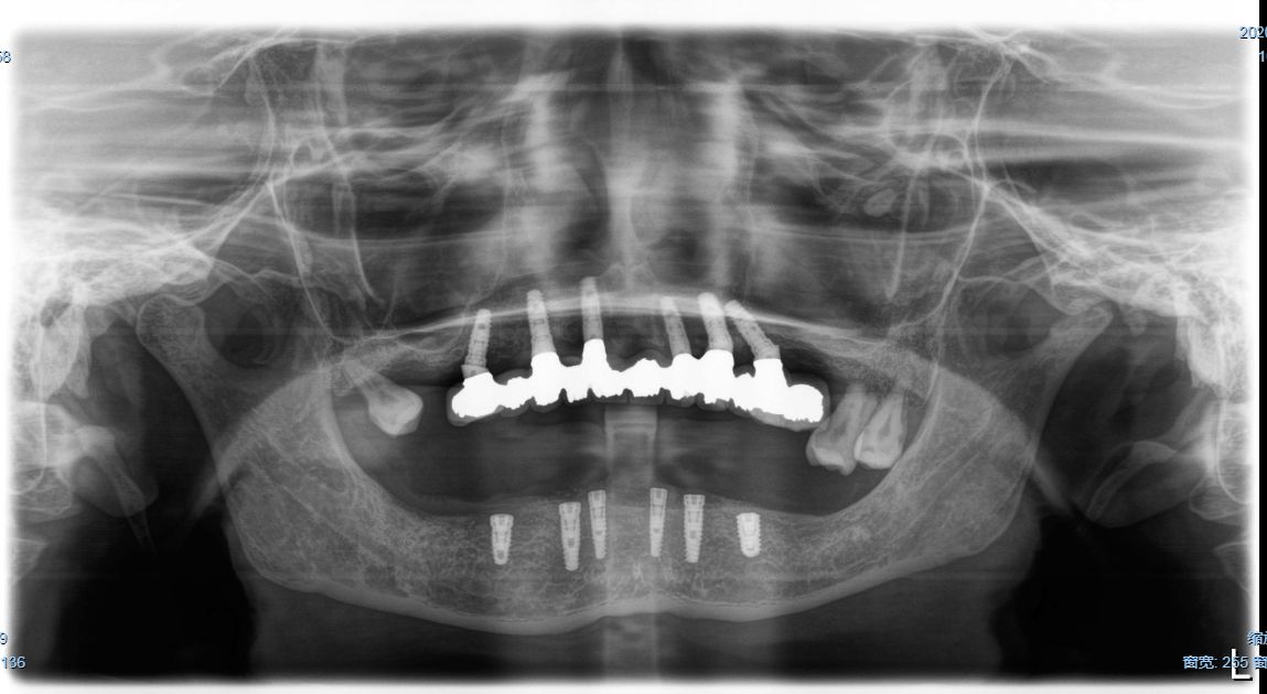 这是一位今天种植牙复诊患者的牙齿的,早期因为牙齿缺失和牙齿松动,严重影响美观,更影响了她的饮食,15年前我为她种了上半口,一直用得很好!但下合的牙因重度牙周病引起牙齿松动和脱落,今年我又为她种了下半口;经过采用种植牙的方式,使得她的牙齿重换新生,患者说:“戴上牙以后什么都能吃,体重还重了许多,很庆幸当时选择种牙这个选择”。