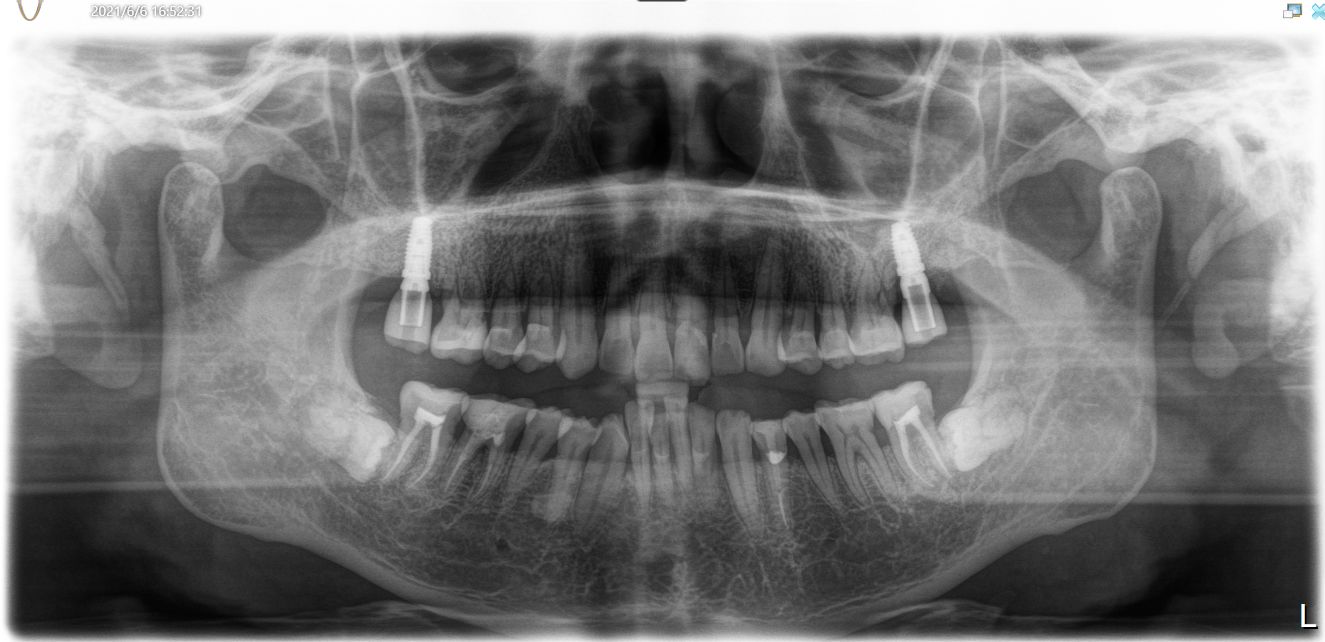 患者是成功人士,平时非常忙碌,忽略了口腔健康,直到有一天无法咀嚼食物后才想到要治疗牙齿,我们为他摄了CBCT,发现有重度牙周病,上合双侧7自然脱落,左上8,III度松动,并近中倾斜移位,对合牙严重伸长,还有其他牙齿疾患,需要综合治疗;经过牙周病治疗、上合窦骨增量、上合种植修复、拔牙、截冠、根管治疗、桩冠、高嵌体修复等!时间长达一年,终于恢复了正常牙列!可以享受食物的美好!
