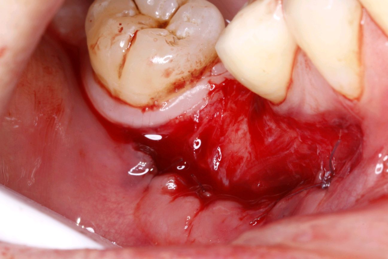 受区准备:15号刀片沿着膜龈联合联合部位做,深为1mm的水平切口,向根方组织充分锐性分离