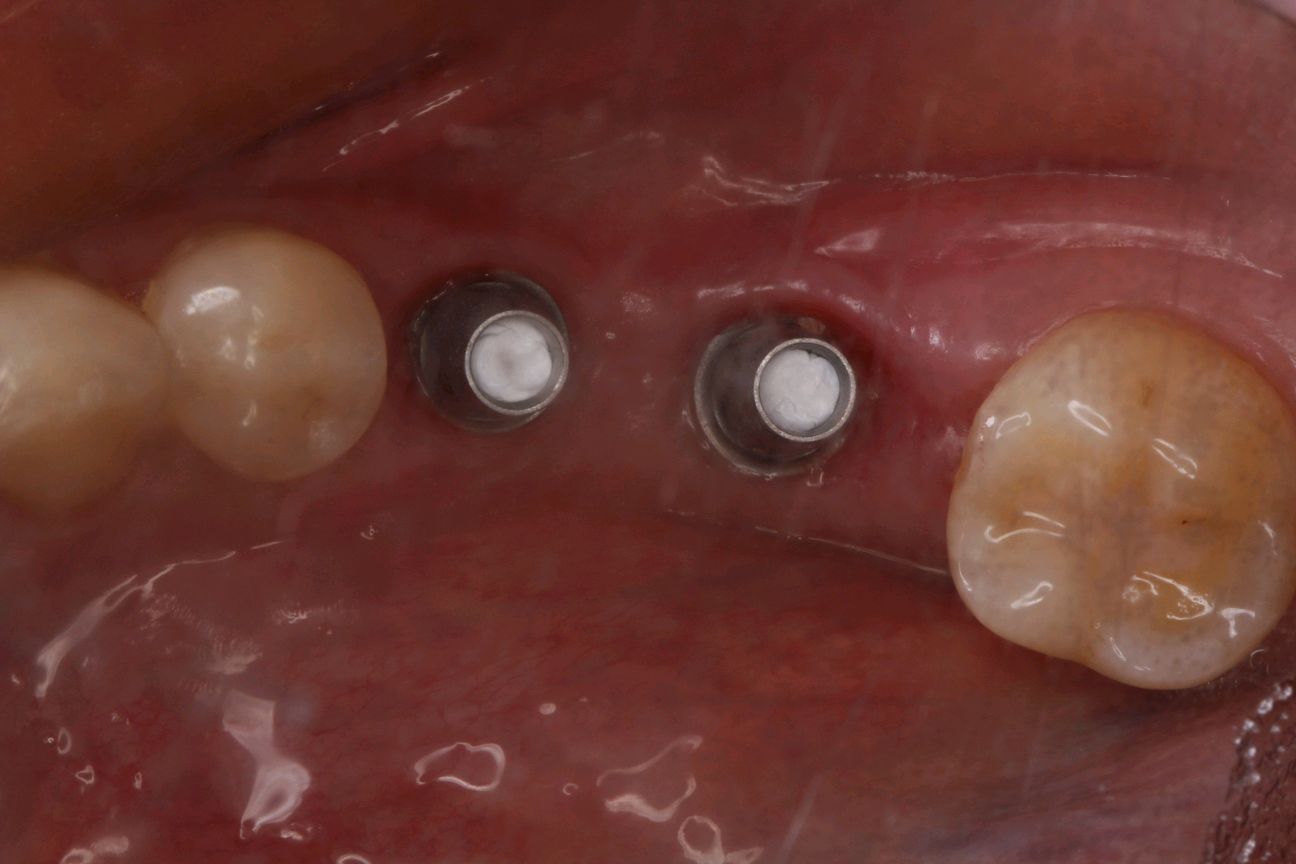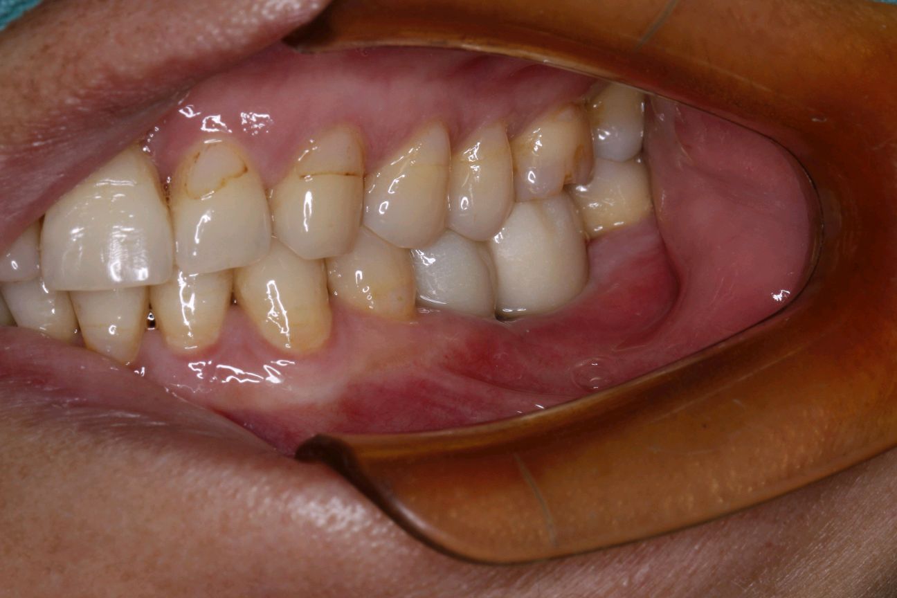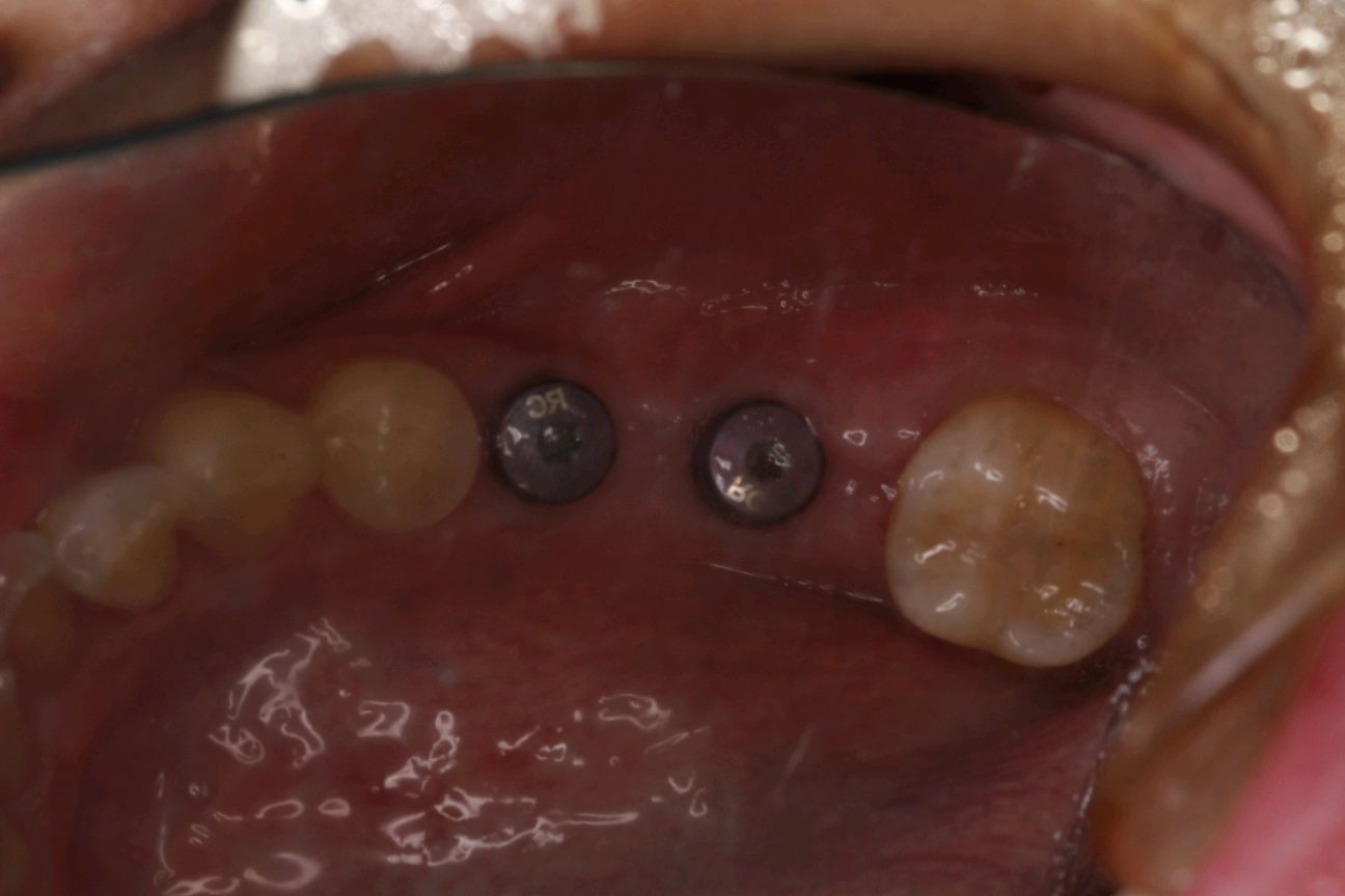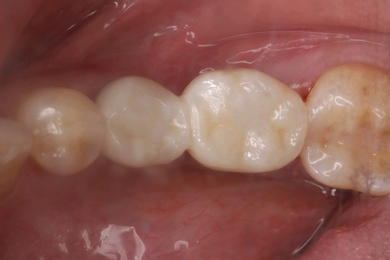 最终患者在做完牙周治疗后,拔除患牙。三月后植入ITI种植系统,植入骨粉骨膜及CGF膜严密缝合。术后骨结合良好。二期三期如期顺利进行,最终于今日安装牙冠,完成种植。患者满意。