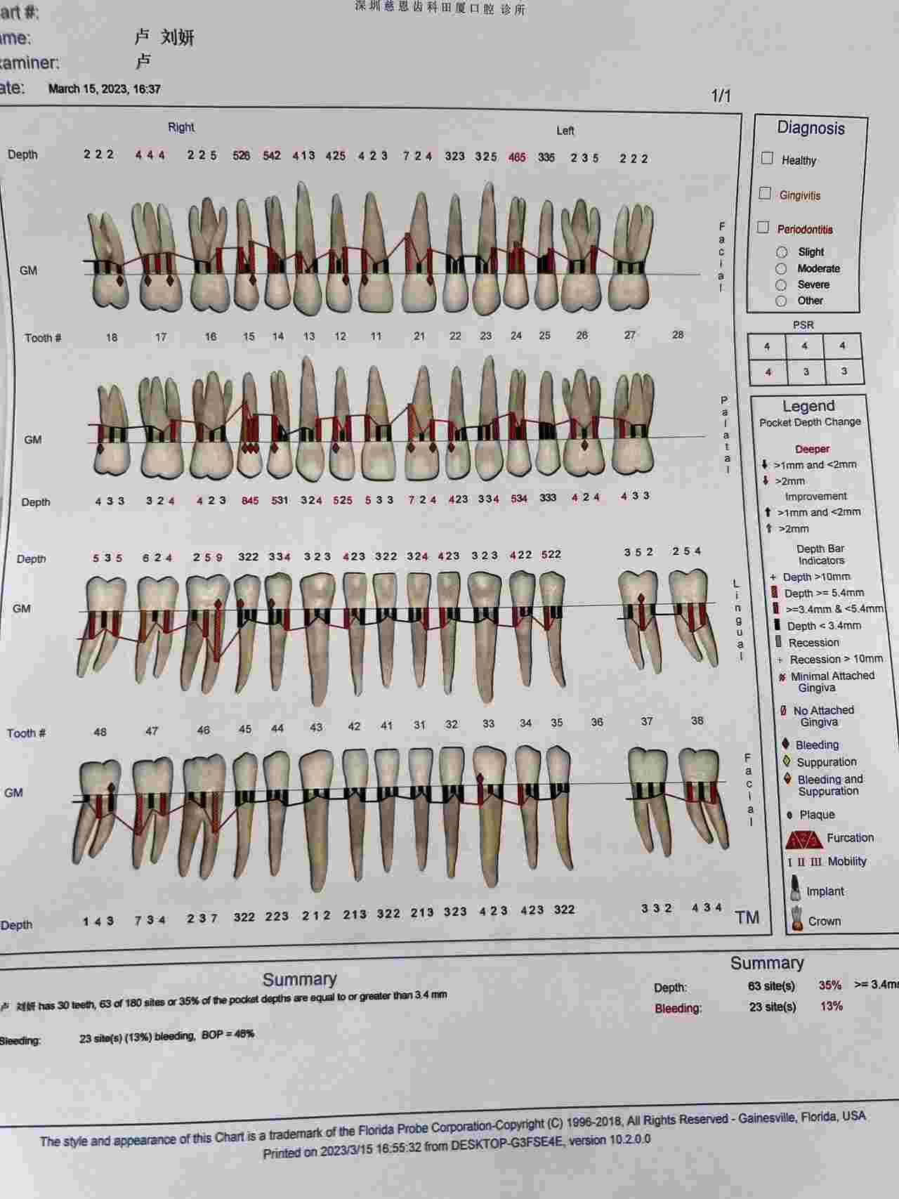 治疗计划:1、全口牙周刮治。2、患牙拔除。3、缺失牙种植修复。4、定期口腔维护复查。