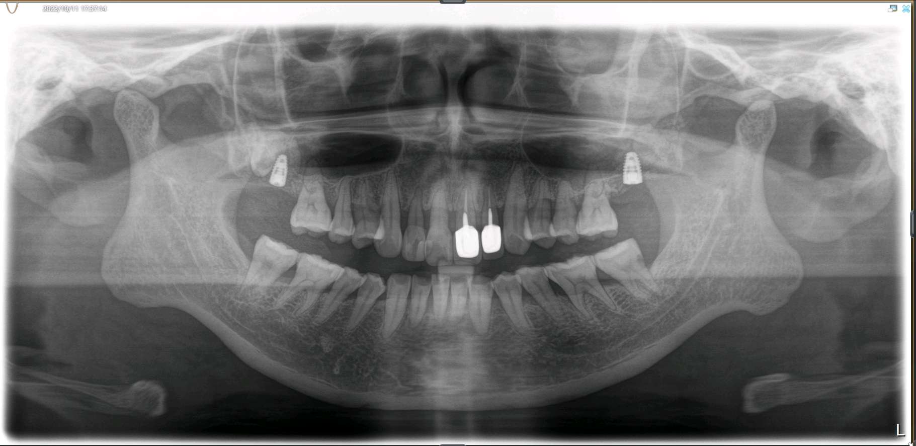 治疗计划:1、牙周治疗。2、21,22饵激光拆除牙冠。清理基牙,重新预备,西诺德全冠修复。3、11、12贴面修复。