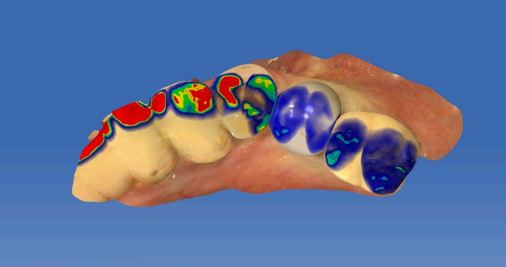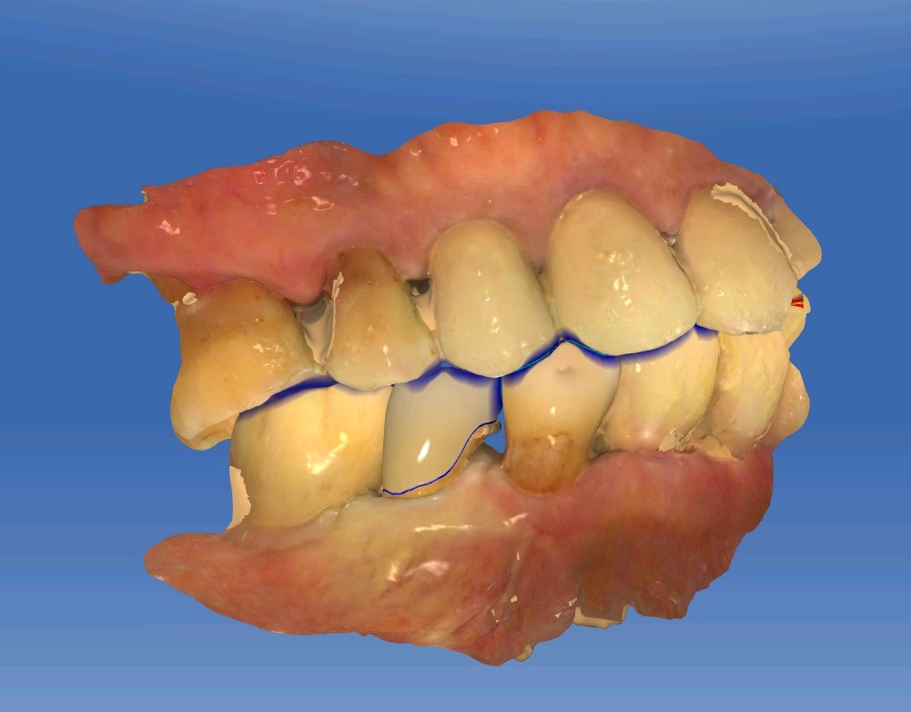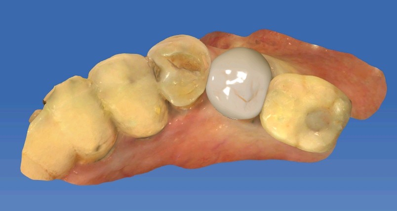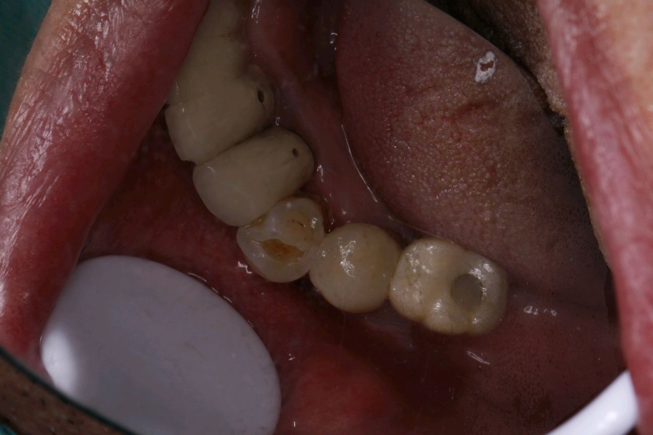 患者男,50岁,45根管治疗后纤维桩+高嵌体修复。高嵌体磨损牙体组织较少,边缘在牙龈上,取印模更加精准,密合,也不会损伤牙龈。只覆盖牙体上面的部分,从而保留了下面的牙体,防止了牙体的折裂。根管治疗后的牙齿没有血液和神经的的供给硬度会下降,咬硬物容易发生劈裂,这样之前治疗就无效了,所以根管治疗后一定要尽快进行冠修复。