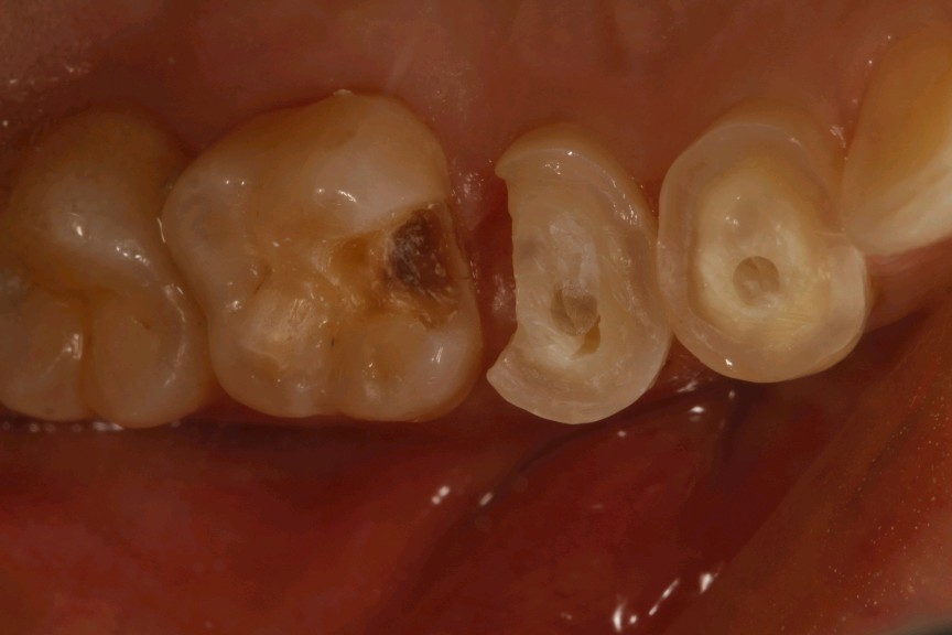 治疗方案:根管治疗+纤维桩+高嵌体修复