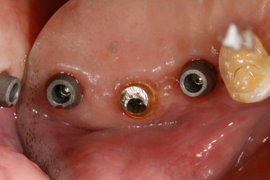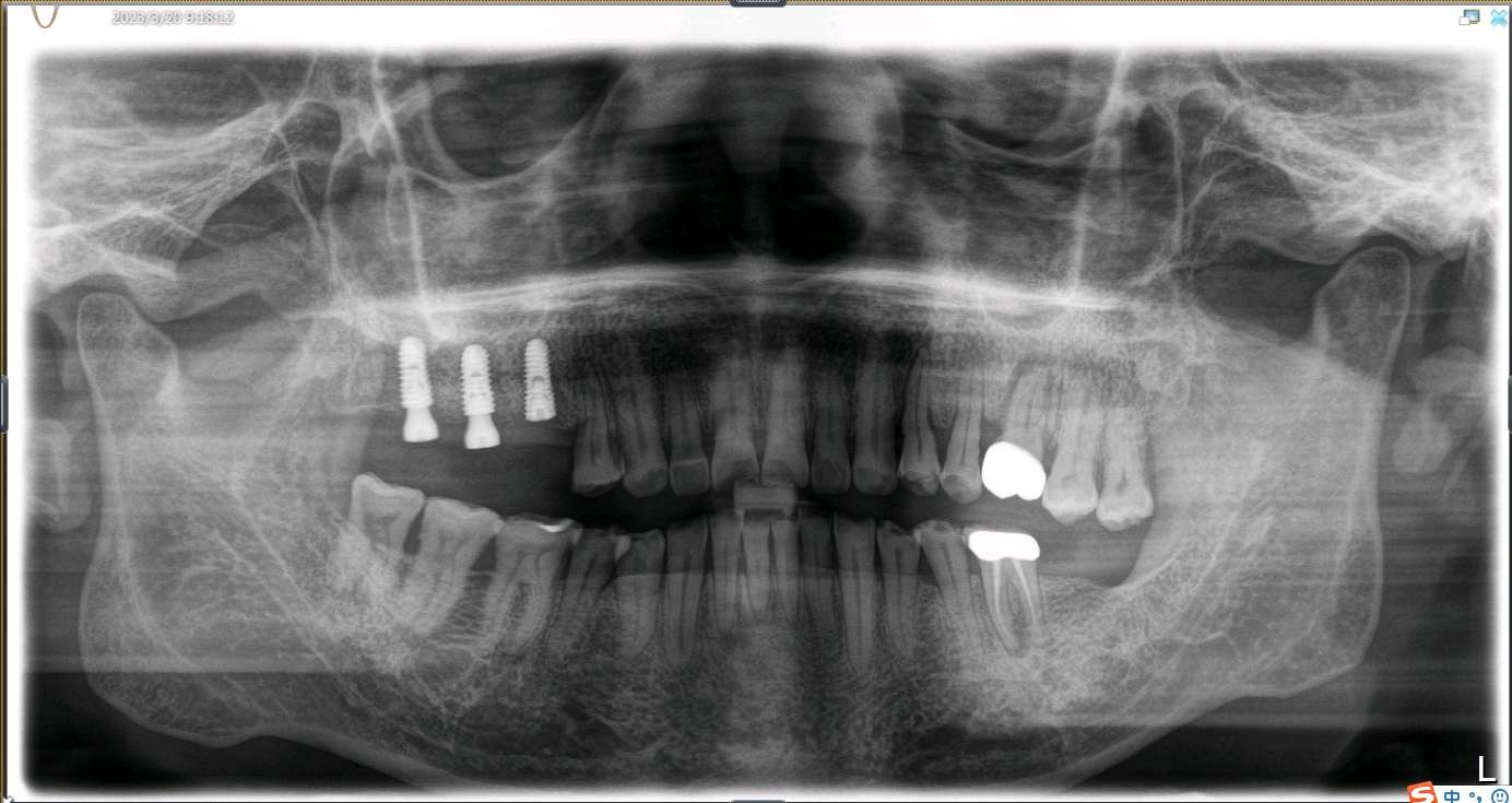 患者男,五十岁,右上后牙缺失一年。治疗计划拔出后种植修复。综合考虑患者自愿选择欧美hiossen种植体。最终15植入hiossen种植体4.5*11.5mm;16、17植入hiossen种植体5.0*10mm。二期三期如期进行。余近日戴牙。