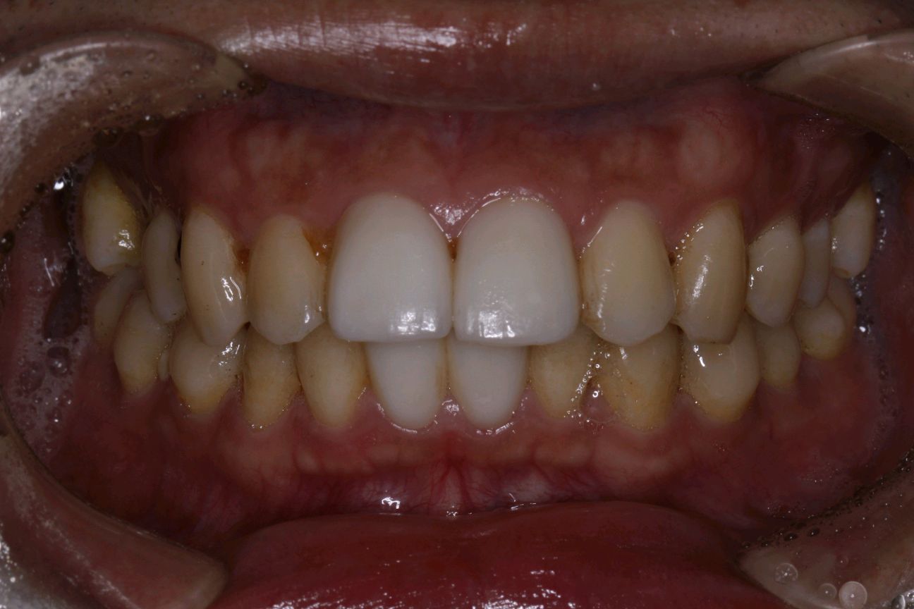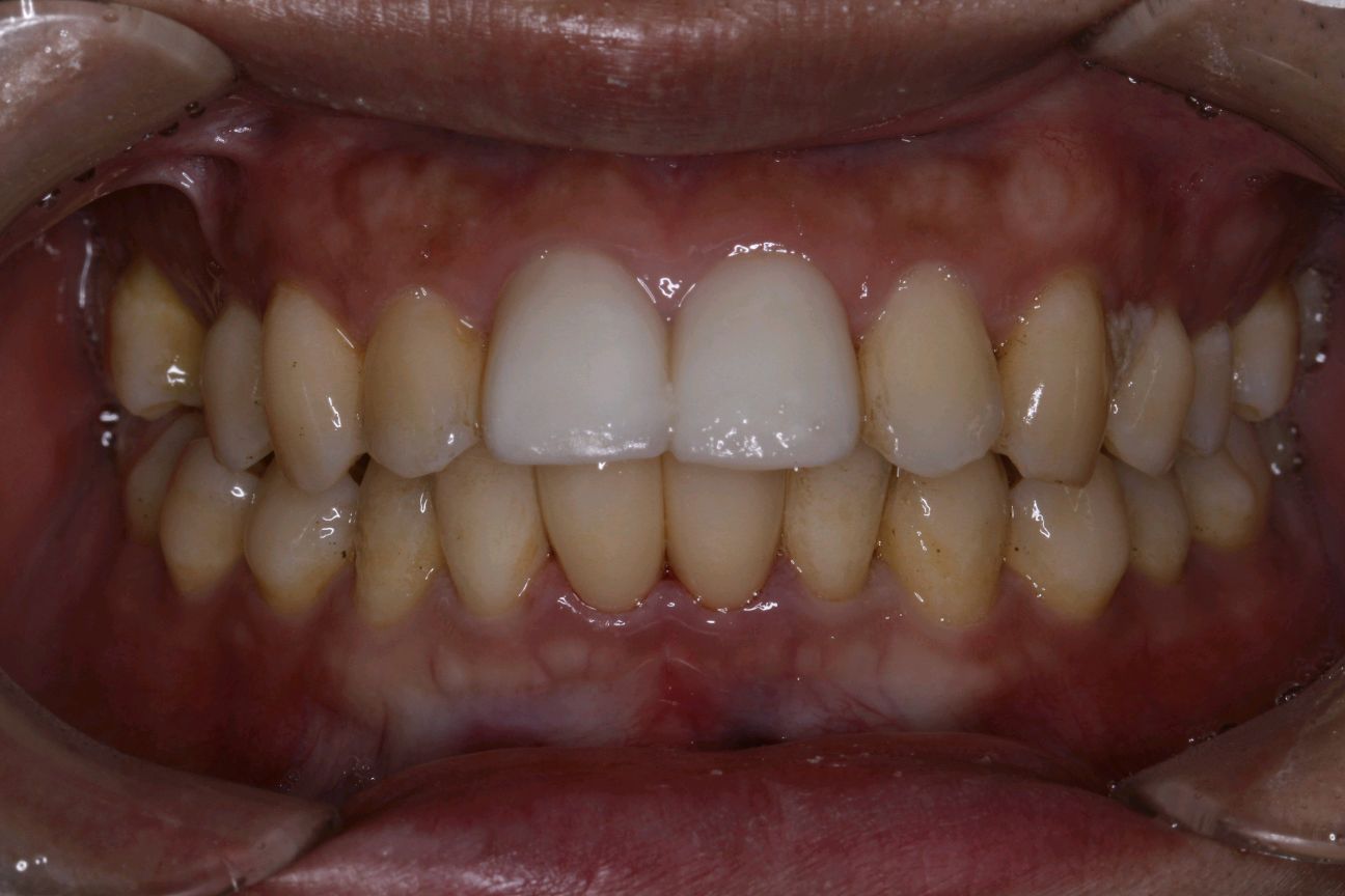 而这位患者在外院已进行了贴面修复,牙体预备量太大,牙齿敏感,色泽形态不满意,特地从香港来就诊,要求拆除后重新修复。
