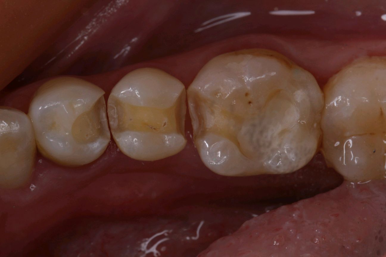患者女,三十岁,15,17邻颌面龋坏,,16继发性龋坏。探(+-),叩(-),冷测试正常,余无不适。很多人牙体缺损面积较大,补牙后很会出现脱落的现象,还有的让选择简单的修复模式补牙,但大量的临床研究显示,牙科树脂充填材料会产生聚合收缩(树脂材料老化),形成微渗漏,引起继发龋(顺着充填材料周围,在牙齿上出现新的腐坏、变黑)。像这种面积比较大的龋齿单纯补牙的话,不耐用。这时候就可以选择嵌体修复。嵌体牙体预备量少,能够保持牙齿外形的完整,减少对牙髓的刺激。还有就是嵌体更耐磨使用寿命较长,从而减轻了患者频繁补牙的痛苦。通过 CEREC 扫描更加精准有效的提高了我们工作效率,当天即可戴牙,正常使用。