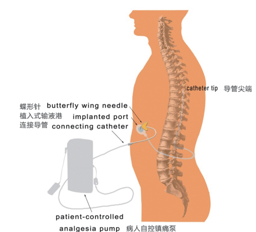 还有部分患者口服大剂量吗啡类药物效果欠佳,我们通过鞘内吗啡泵的植入,只需原有药物的三百分之一的用量即可达到原有疗效,可以大大减少吗啡所带来的不良反应并取得良好的止痛效果。