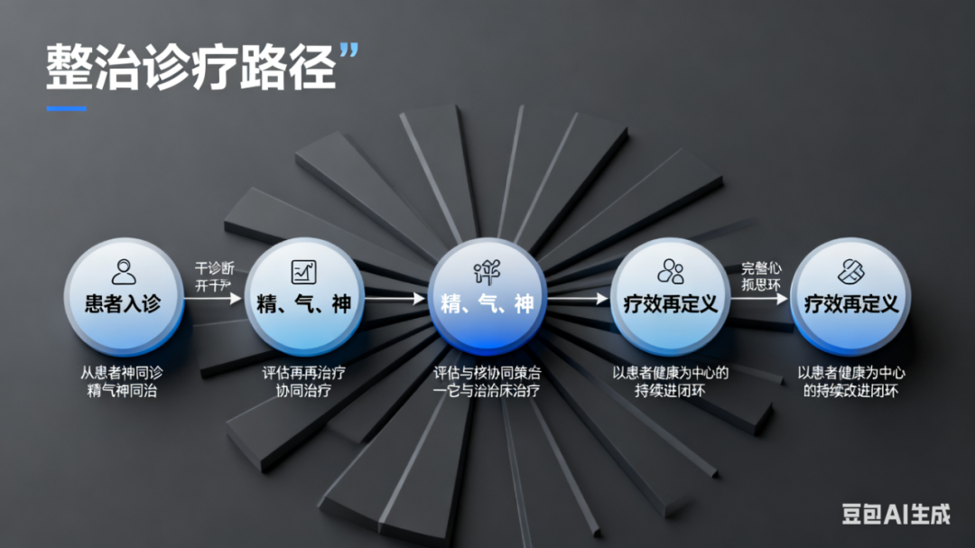 当然,此理论仍需大量临床研究与数据验证,例如开发“精气神”综合评估量表,开展“同治”方案与传统方案的随机对照试验等。