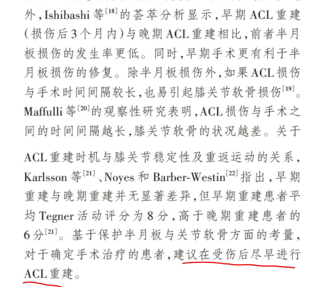 总而言之,前交叉损伤(撕裂断裂)后,从保护半月板及关节软骨的角度出发,应该尽早手术!
