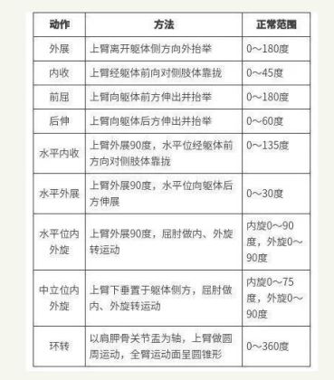 肩关节活动度示意图 ,早期按着几个方向被动练习角度!