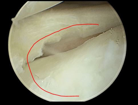 关节镜可以非常清晰的显示整个盘状半月板的形态、撕裂的部位及程度,也能够做出精准的相应处理。