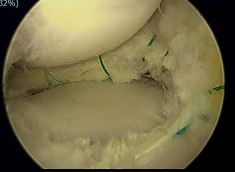 有时候盘状半月板伴有层裂、纵裂或者其他类型的撕裂,在行半月板成形后需要缝合固定!