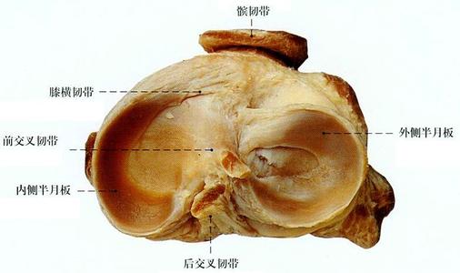 半月板为盘状,大而厚,完全覆盖胫骨平台
