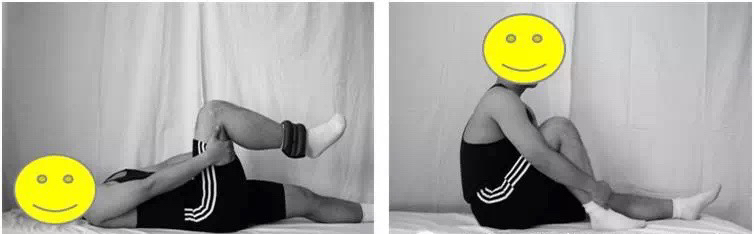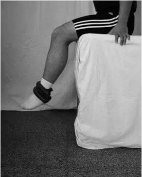1,床边自然垂下,肌肉放松,小腿贴床边,可以适当辅助推力或者另一条腿架在患腿上,轻轻压下去,在忍受的范围内达到最大角度!
