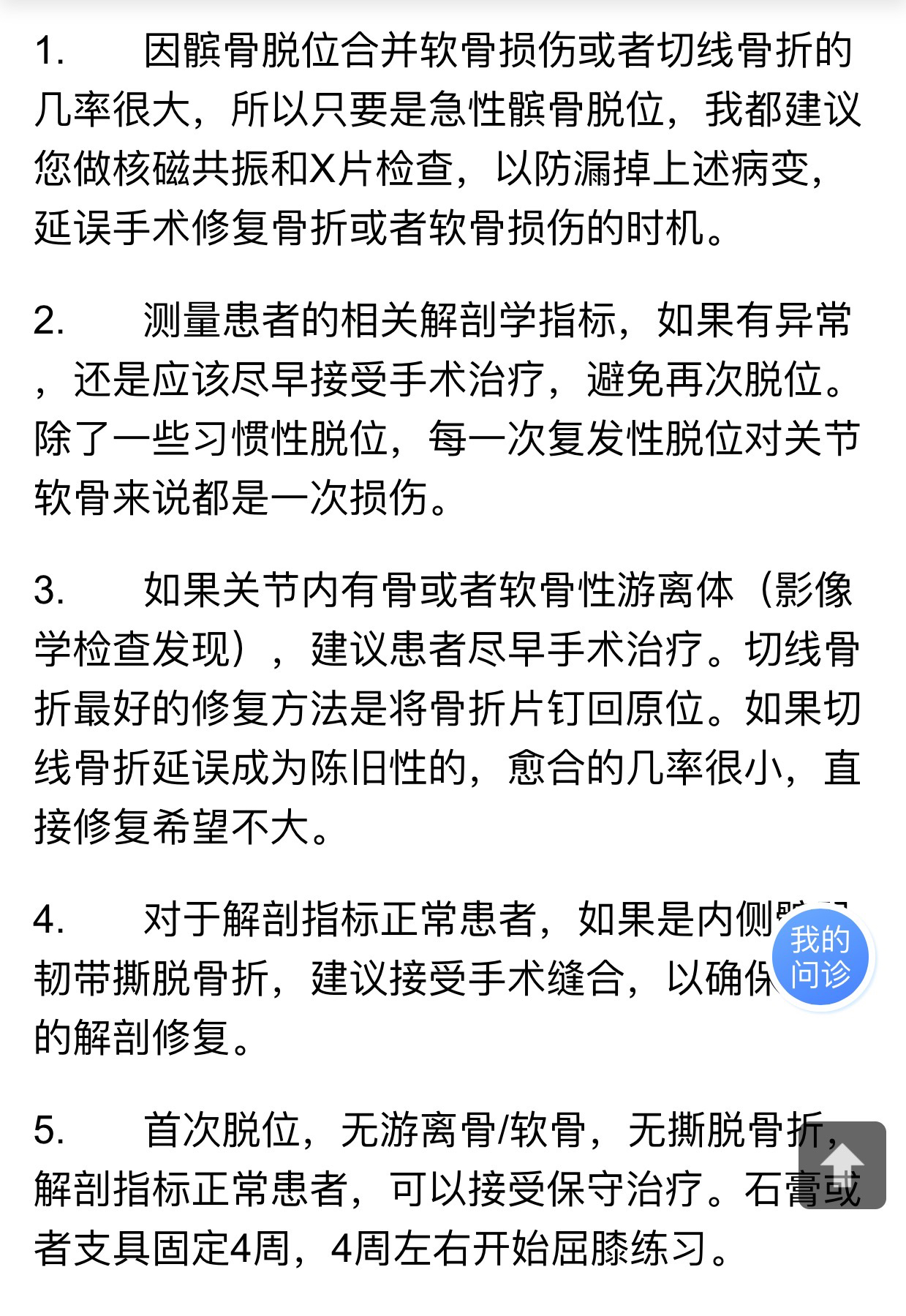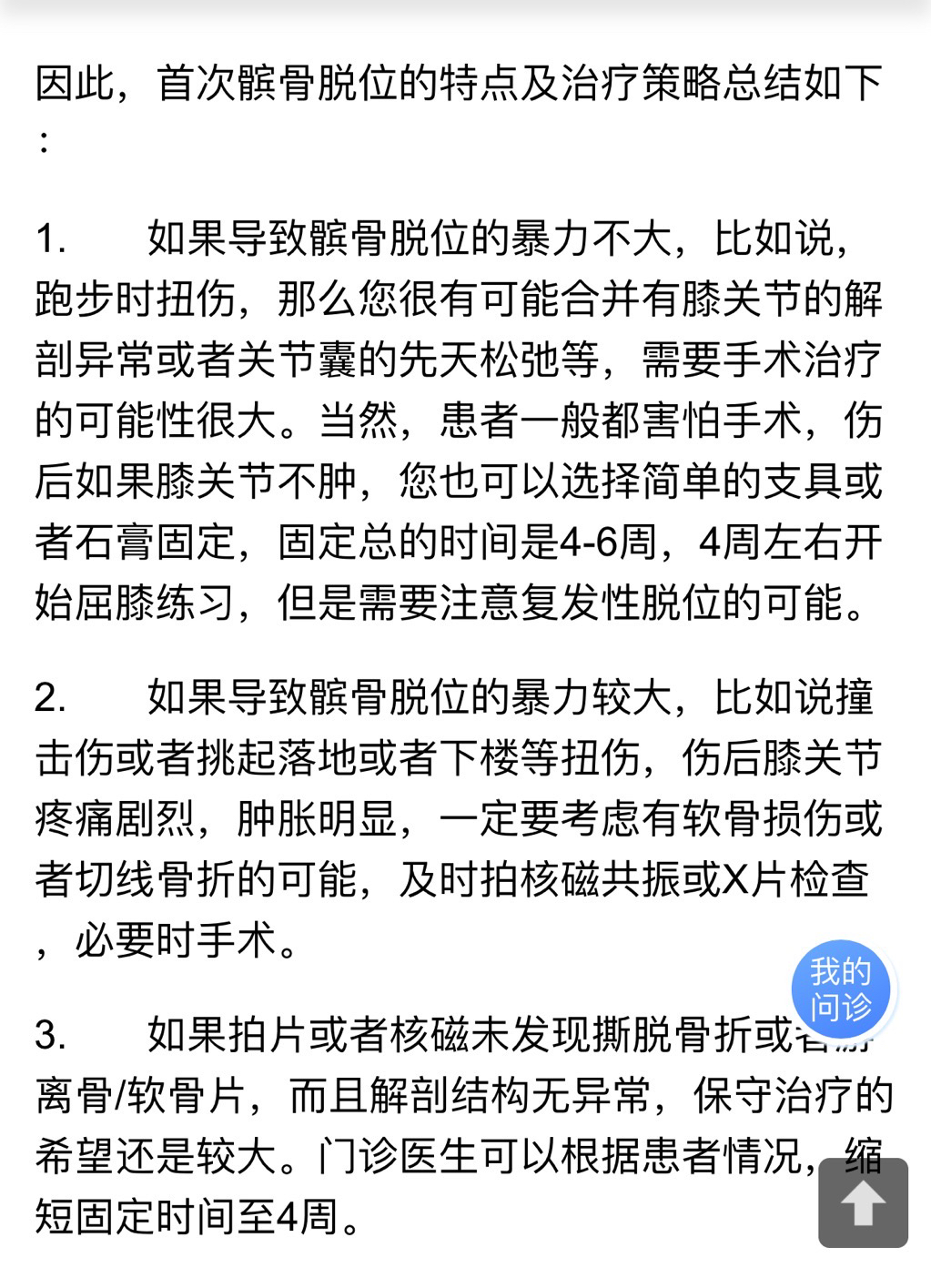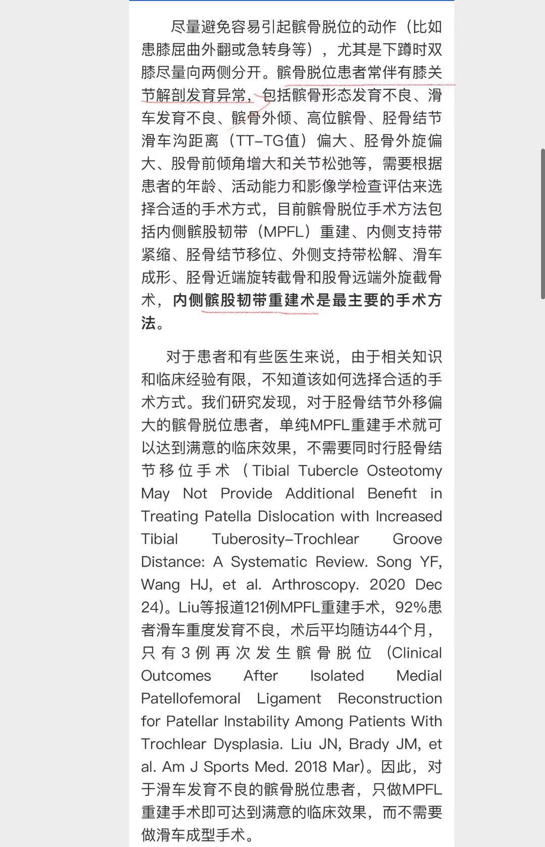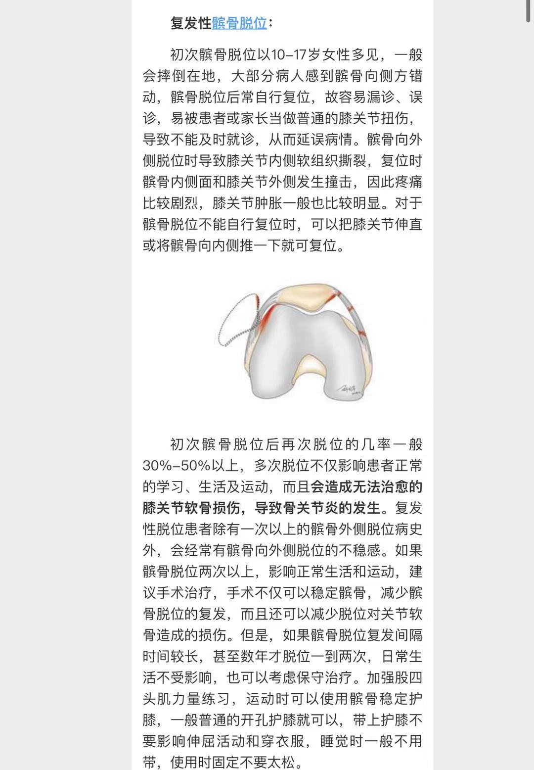 那么,对于第一次发生髌骨脱位的患者应该怎么处理,目前存在一定争论。我的原则如下:(同北医三院)