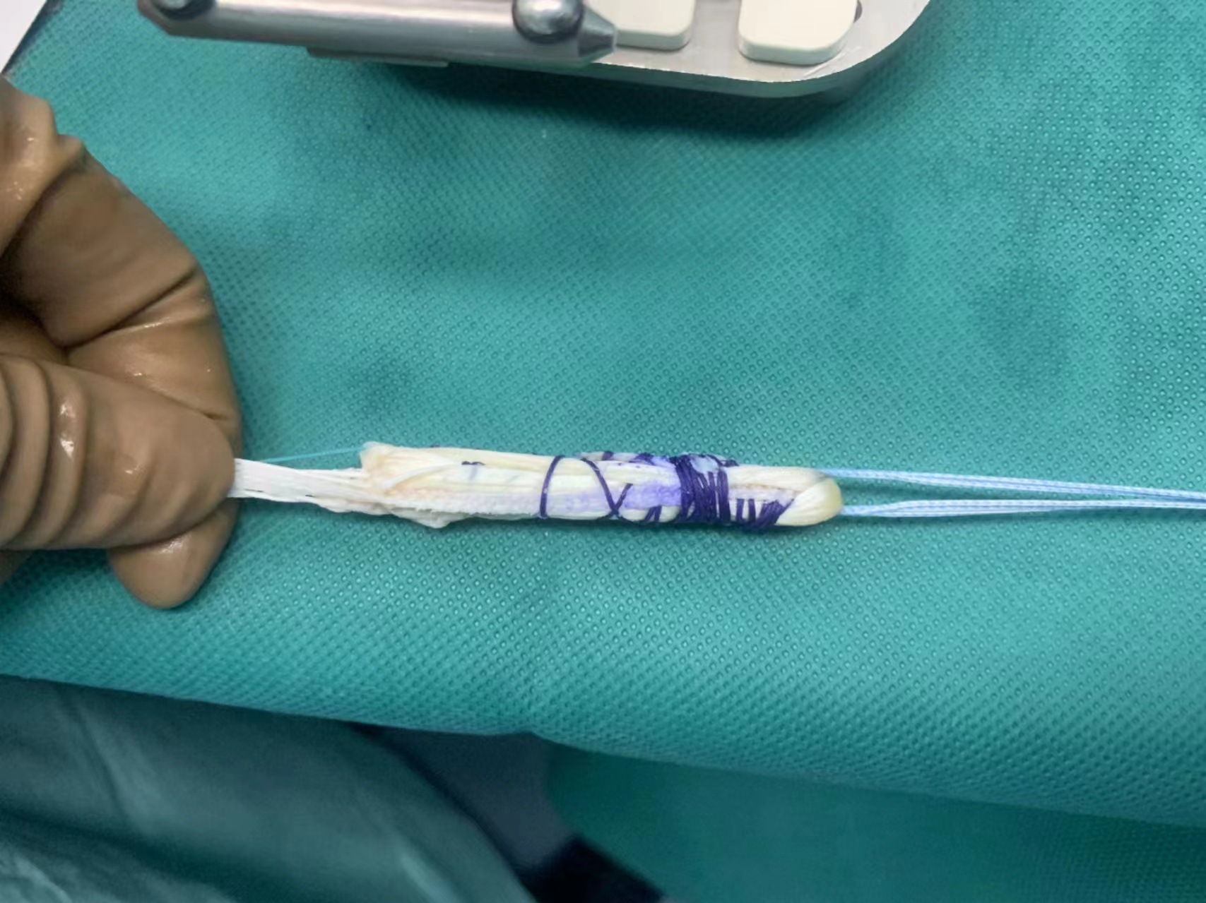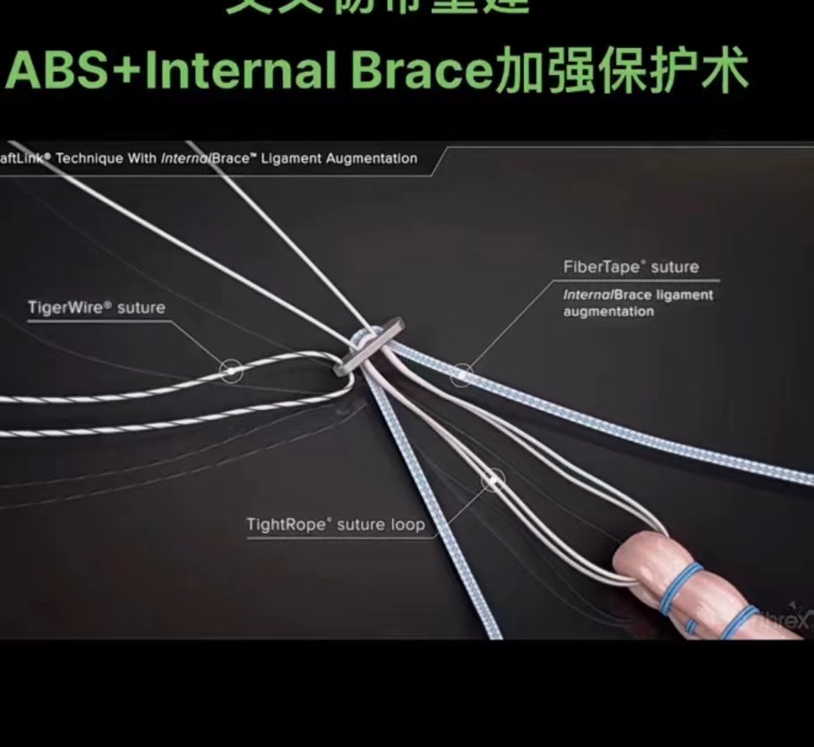 但是,现在受异体肌腱组织工程库的影响,目前异体肌腱难以长期在临床使用。当自体肌腱不足(细或强度不够)的情况下,目前可以采用增强保护技术。术中也是采用较为细的人工韧带组织,予以加强编织,也可以取得比较好的临床效果!