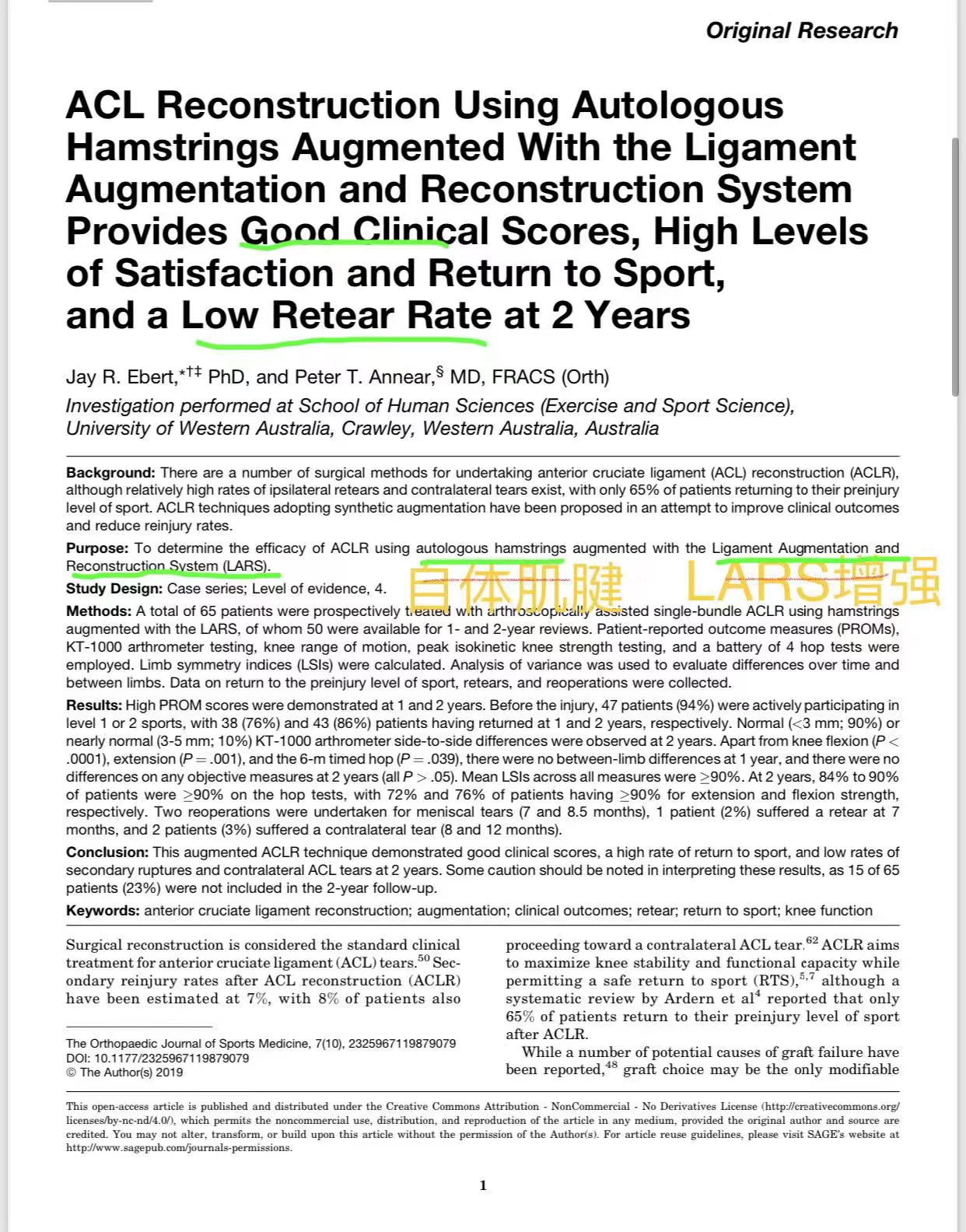 那么在进行前交叉韧带重建(ACL reconstruction ,ACLR)手术中,选择什么材料合适呢?是自体肌腱?异体肌腱?还是人工韧带?