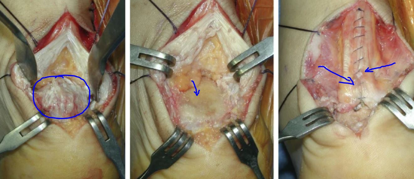 如果症状得不到缓解或加重,也可以选择在正规医院通过手术切除跟腱钙化部位,从而缓解此症状。手术中使用缝合锚重建跟腱止点,建议使用双排锚钉构建来增加强度。术后恢复性锻炼至少需要9个月。