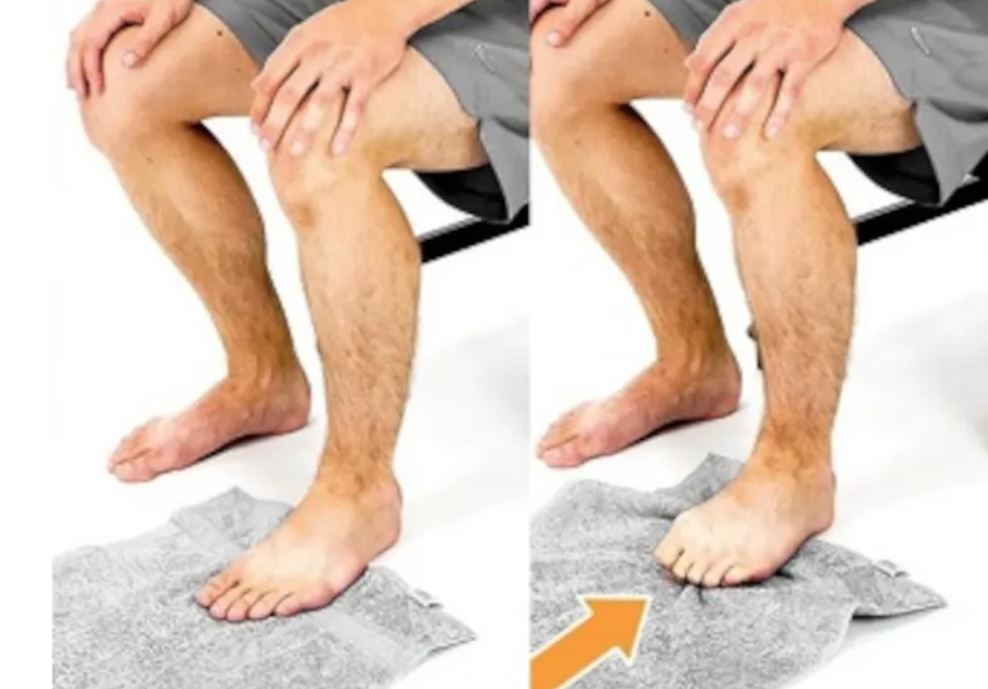 1,脚趾抓毛巾(Towel Crunches):平铺毛巾在地板上,患者坐立位,把脚平伸在毛巾上,然后脚趾将毛巾向后方拉,直至毛巾被完全卷曲到足边,重复此操作 10 到 15 次。