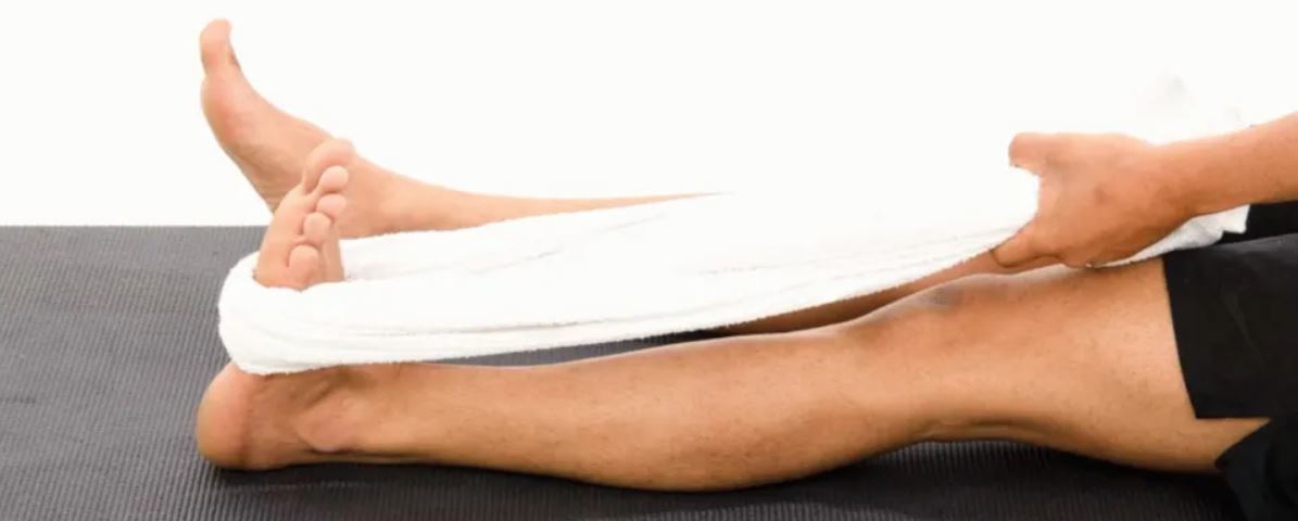 3,毛巾拉伸(Towel Stretches):席地而坐,将受伤的腿前伸。将毛巾绕在脚底表面上,向后拉并保持 20 秒。可以将膝盖弯曲 20-30 度,重复此操作。重复这个动作3到5次。