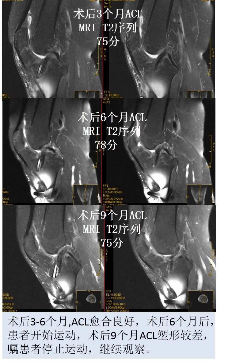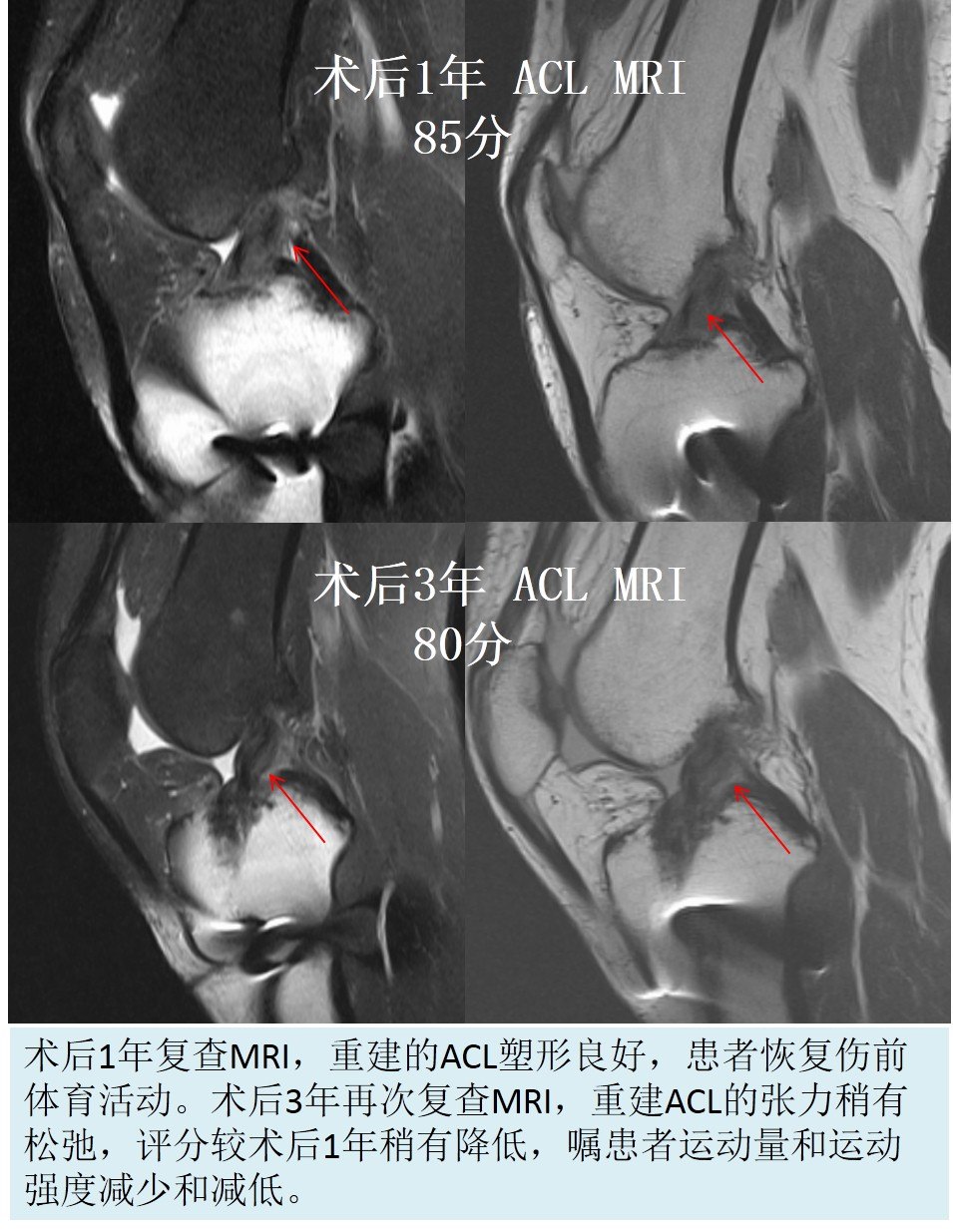 有些患者在前交叉韧带重建2年后,韧带塑形完好,但是如果不加控制的进行过强的运动,韧带也会出现变化,甚至变差!