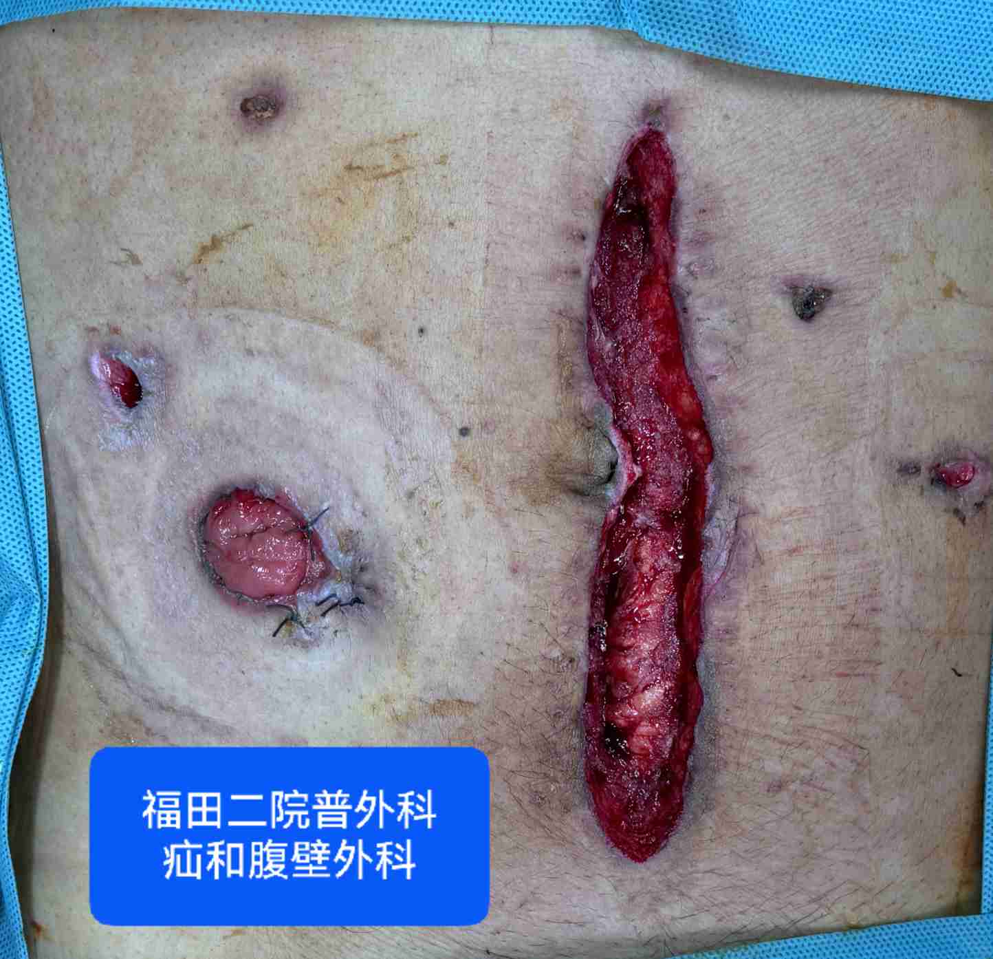 腹壁难愈性伤口感染,往往腹部大手术、腹腔感染、肠瘘、胆瘘、营养不良、植入物等因素相关,处理起来比较棘手。常规换药的话往往需要数月的时间,而且可能每天要换药好几次,病人和医生都痛苦不堪!